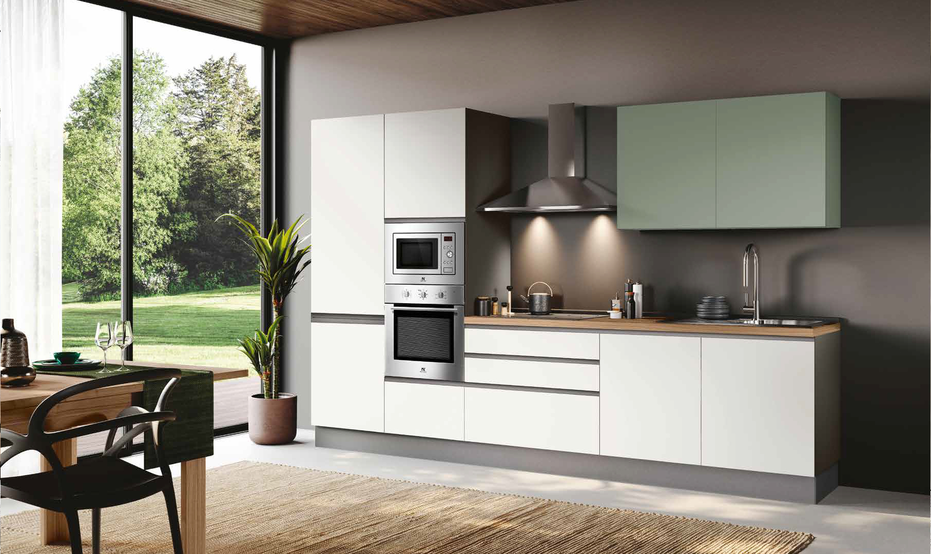 Évier, Mitigeur, Lave-vaisselle, Plaque, Hotte, Four, Micro-ondes, Réfrigérateur